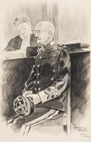 Le Musée d’Art et d’Histoire du Judaïsme a préempté et acheté 57 des 61 dessins d’audience de Maurice Feuillet illustrant le procès de Zola (Paris du 7 au 23 février 1898) et celui de Dreyfus (Rennes, Août 1899). Cet ensemble, dispersé par IVOIRE NANTES pour une somme totale de 60.000€ (frais compris), provenait directement de la descendance de l’artiste, et était très convoité à la fois par les musées et les collectionneurs. Il montrait tous les intervenants de l’Affaire Dreyfus, experts, magistrats, officiers, dessinés par Maurice Feuillet (1873-1968), jeune illustrateur et journaliste chargé d’illustrer les grandes affaires françaises.